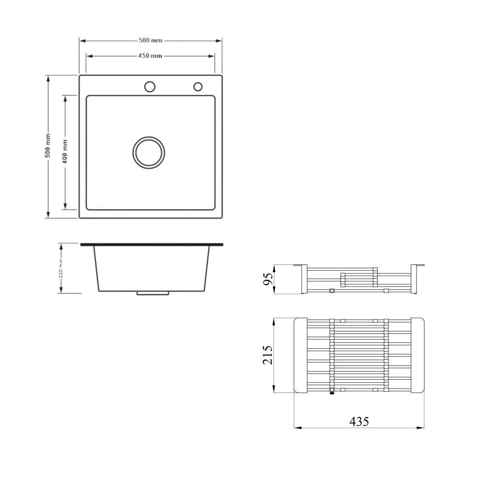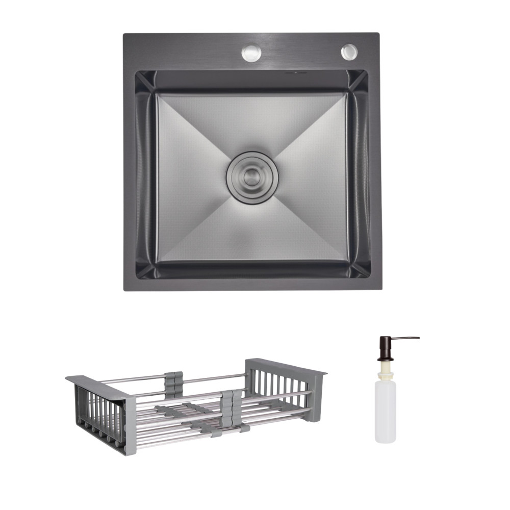 Характеристики Комплект Lidz Handmade H5050HB Мийка для кухні інтегрована Decor Black PVD Honeycomb у комплекті з дозатором + Lidz K01G Корзина для кухонної мийки