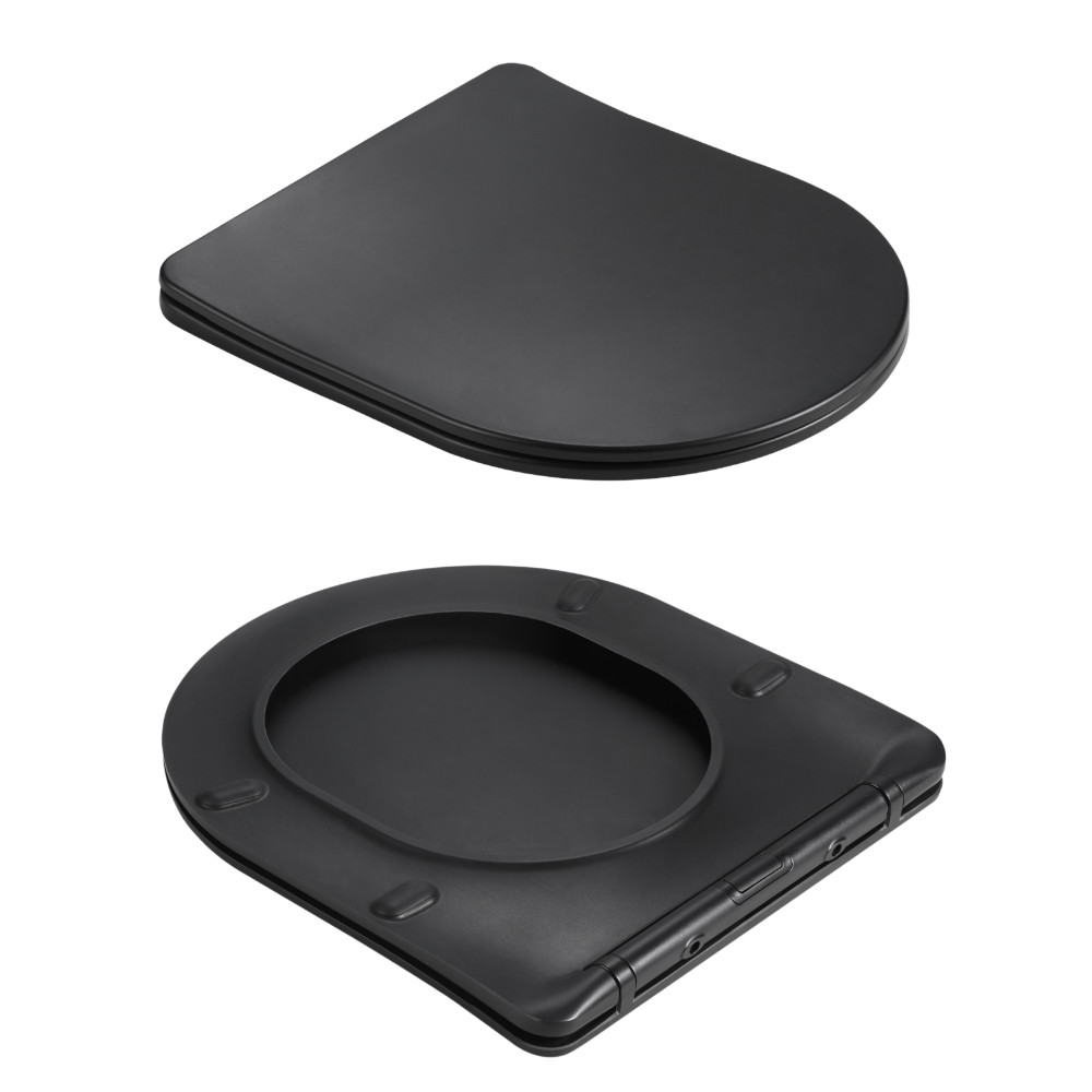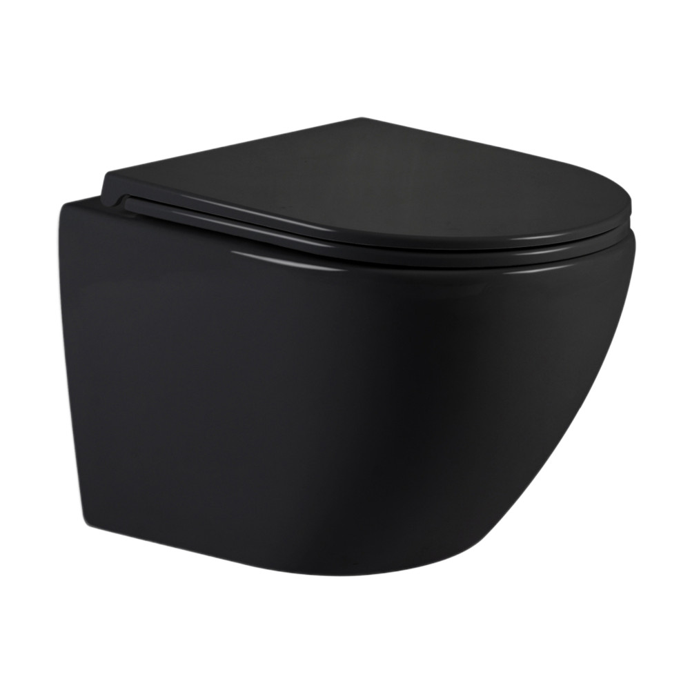 Опис Унітаз підвісний Jay Ultra Quiet 485х360х320 мм, Matt Black, сидінням Slim Duroplast/ Soft-close/ Quick Relase QT07335177MB Qtap