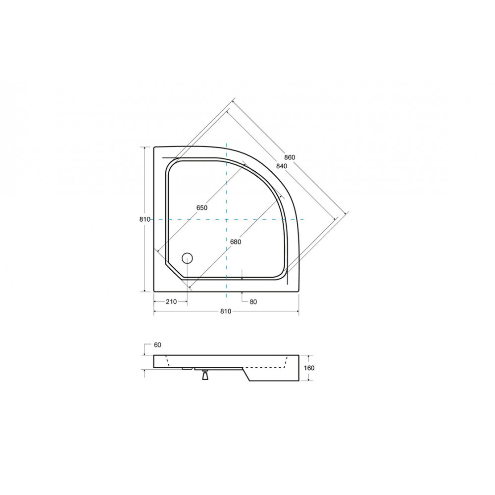 Опис Піддон півкруглий ALEX 80х80х4/16 см + ноги