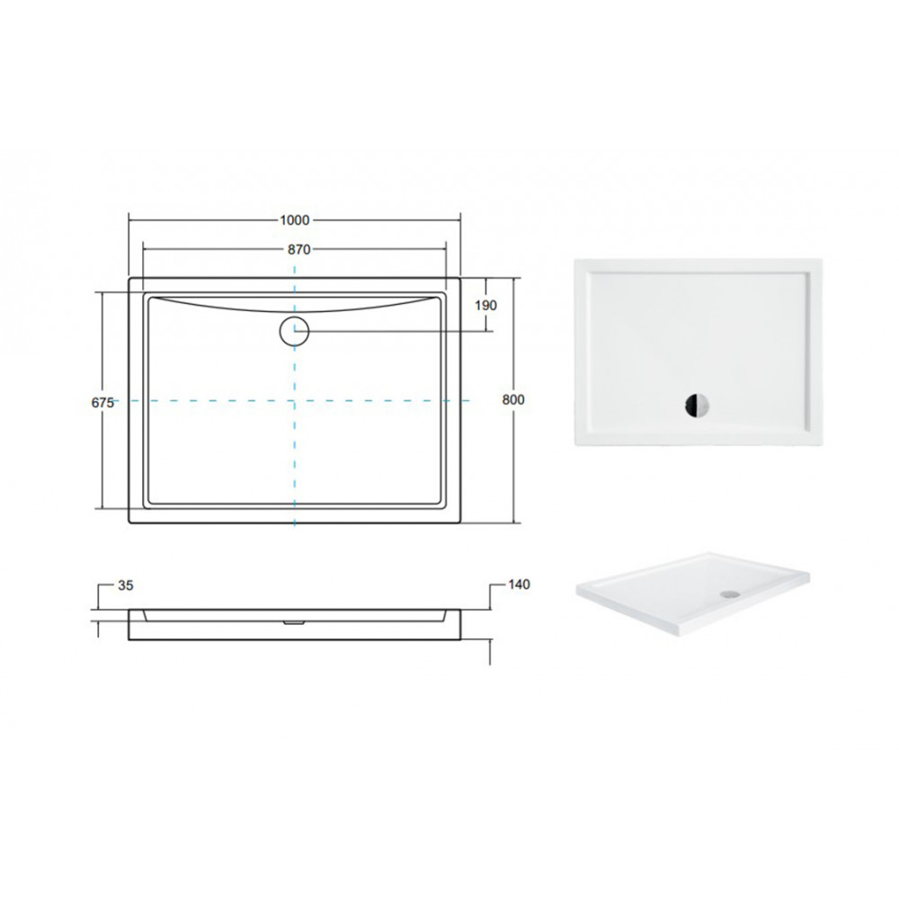 Опис Піддон прямокутний ALPINA 100х80х14 см інтегрована обудова + ноги