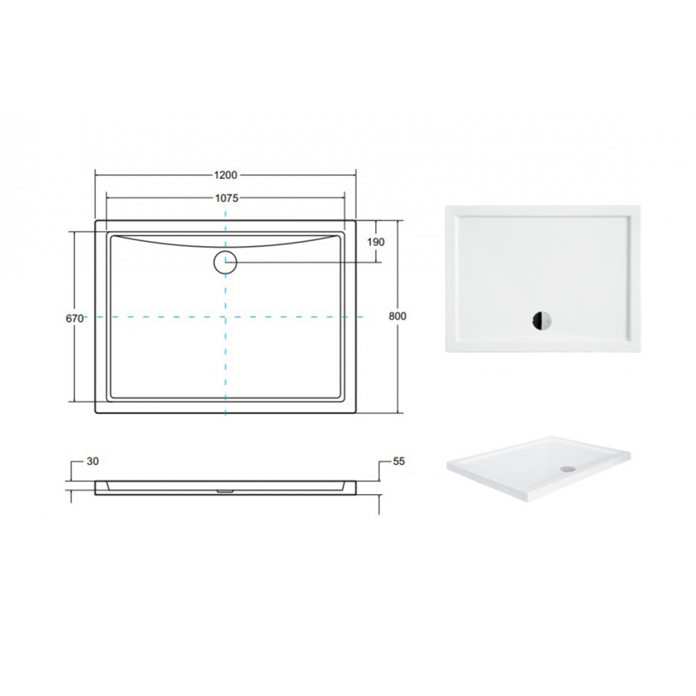 Опис Піддон прямокутний ALPINA SlimLine 120х80х3/5.5 см