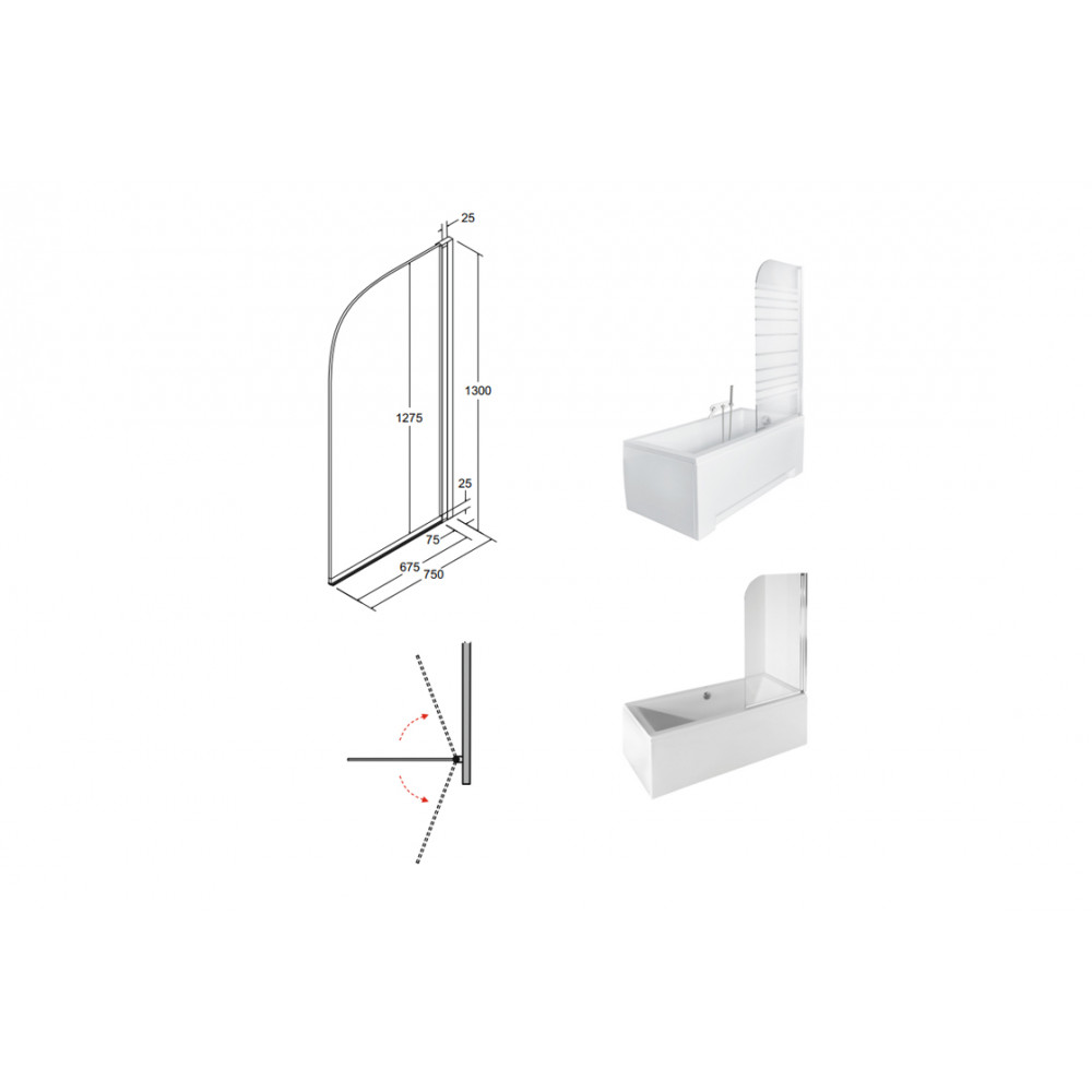 Шторка для ванни PMD Ambition-1S 75х130 зі смужками (#12779-01)