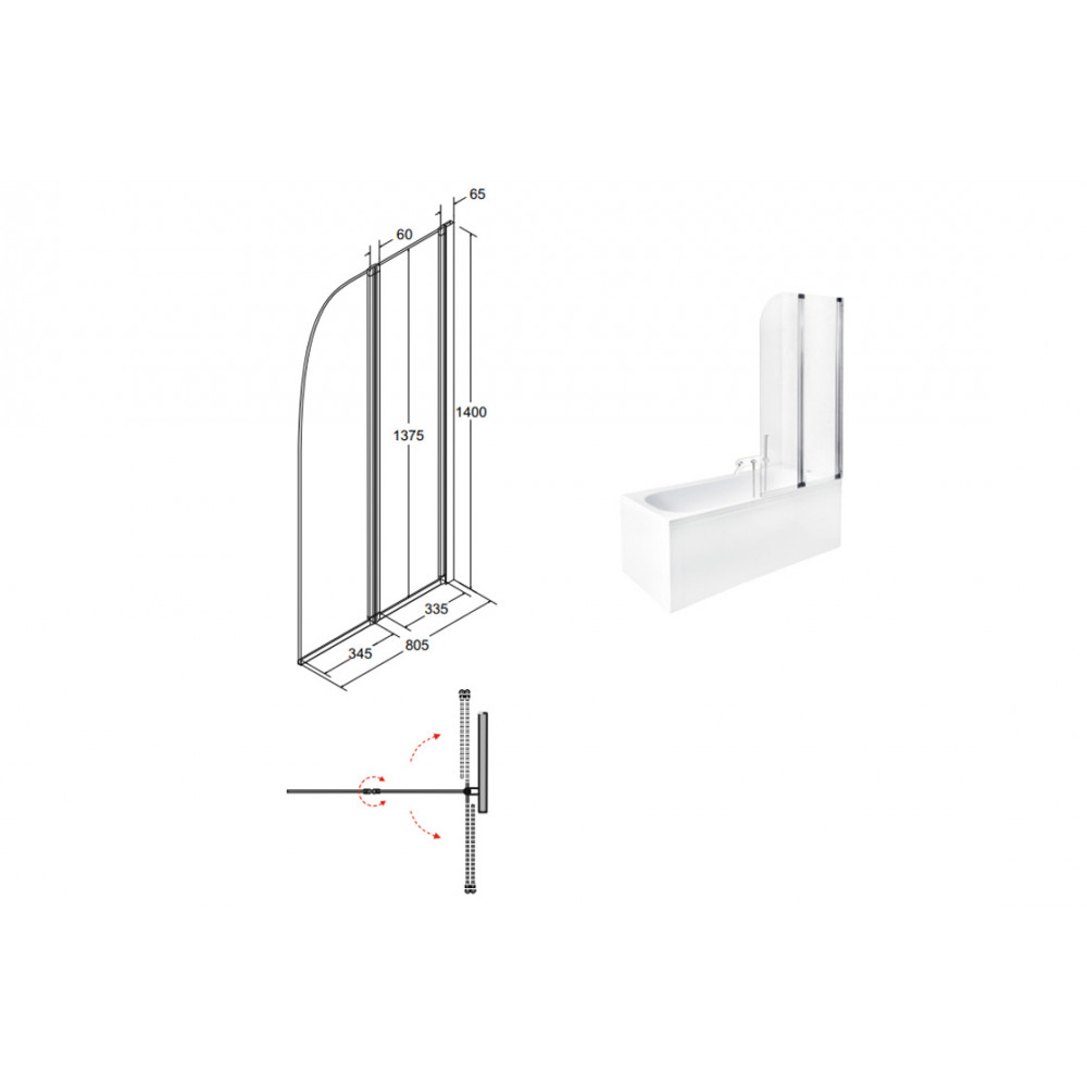 Опис Шторка для ванни PMD Ambition-2S 80.5х140