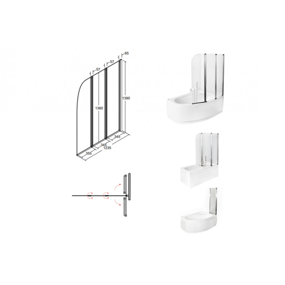 Шторка для ванни PMD Ambition-3S 123х140 (#12781-01)