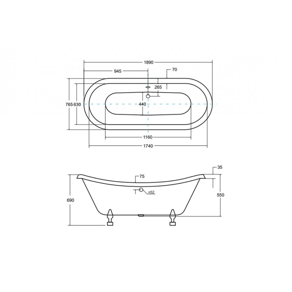 Опис Ванна AMELIA ретро 190х77 з ногами золото, з 2 отворами, без сифону