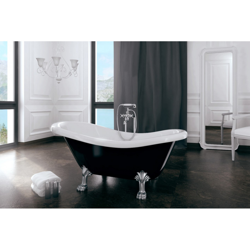 Опис Ванна AMELIA ретро 190х77 чорна зовні біла всередині, з одним отвором, з ногами хром