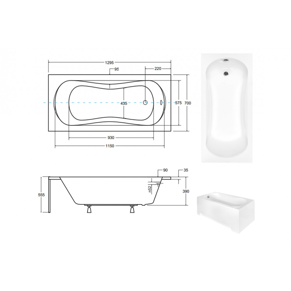 Опис Ванна акрилова ARIA 130х70 (соло) без ручок і БЕЗ отворів під ручки
