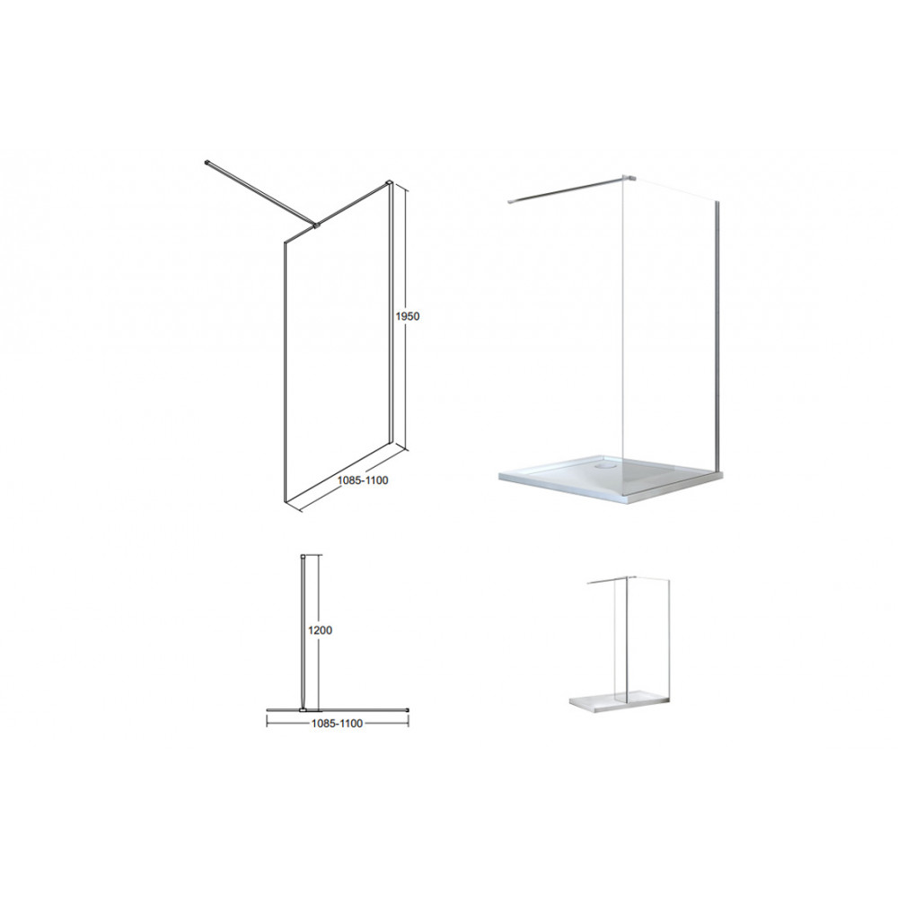 Опис Кабіна walk in AVEO 110x195 скло прозоре, тримачі хромовані 120 см