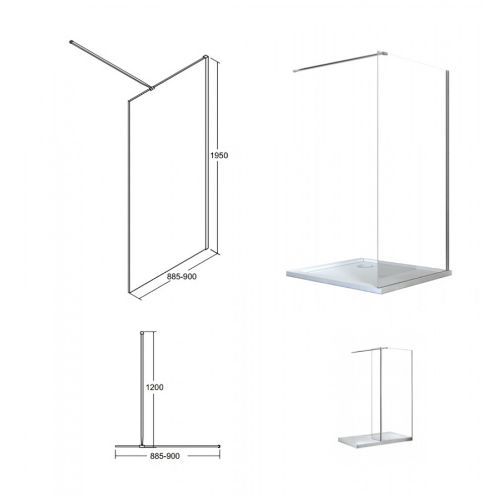 Опис Кабіна walk in AVEO 90x195 скло прозоре, тримачі хромовані 120 см