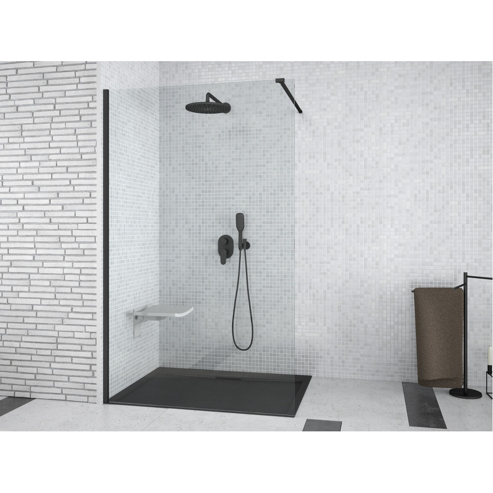 Кабіна walk in AVEO BLACK 140x195 скло прозоре, чорний профіль, тримачі 120 см (#12849-01)