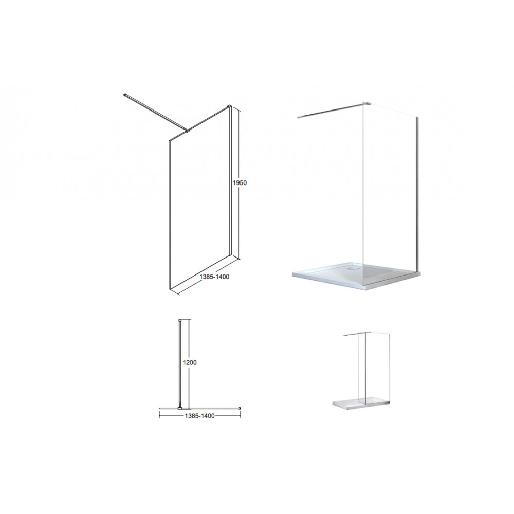 Опис Кабіна walk in AVEO BLACK 140x195 скло прозоре, чорний профіль, тримачі 120 см