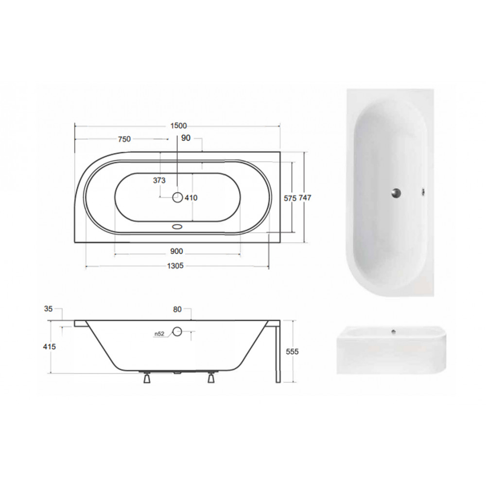 Опис Ванна акрилова AVITA 150х75 Ліва (соло) без ніг
