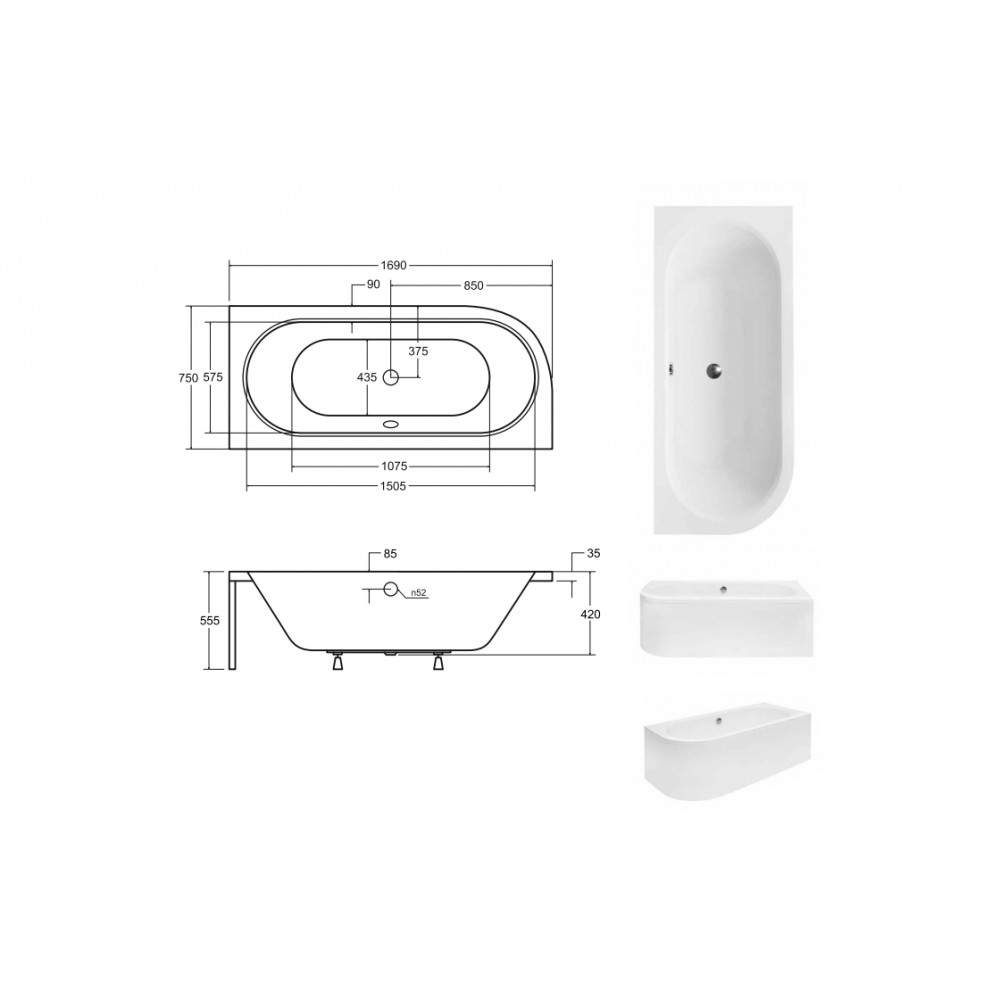 Опис Ванна акрилова AVITA 170х75 Права (соло) без ніг