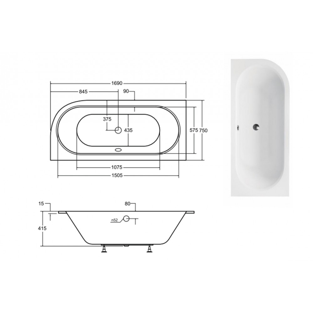 Опис Ванна акрилова AVITA SLIM 170х75 ліва (соло) без ніг