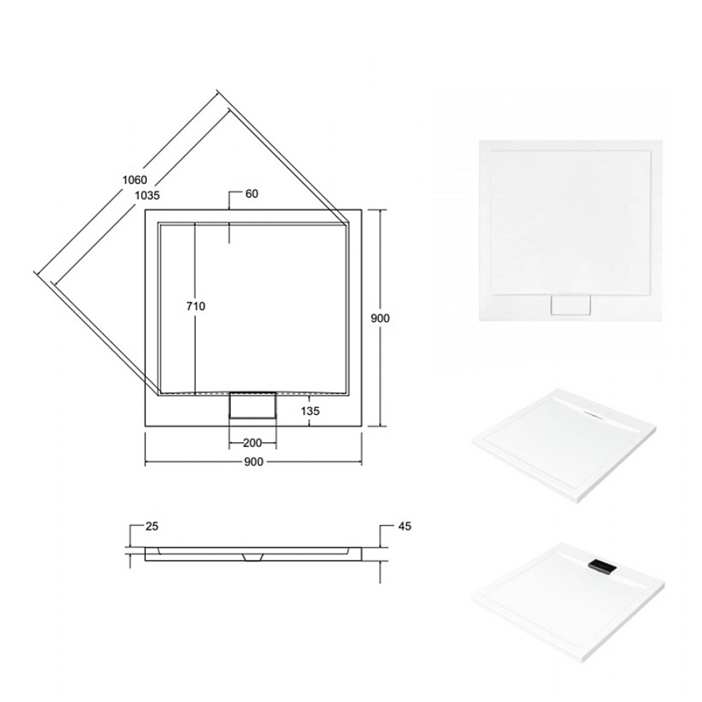 Опис Піддон квадратний AXIM 90х90 stone effect чорний + сифон