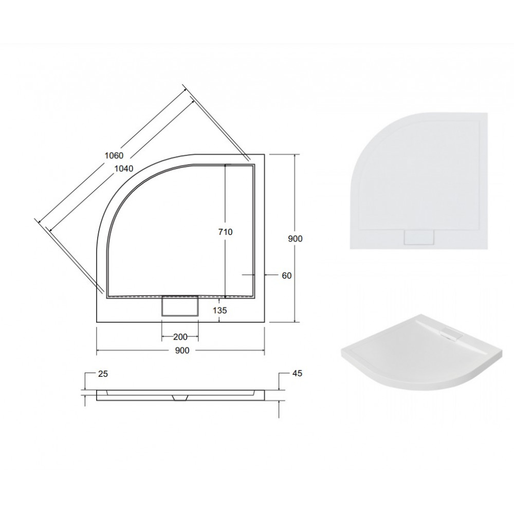 Опис Піддон півкруглий AXIM UltraSlim 90х90 білий + сифон