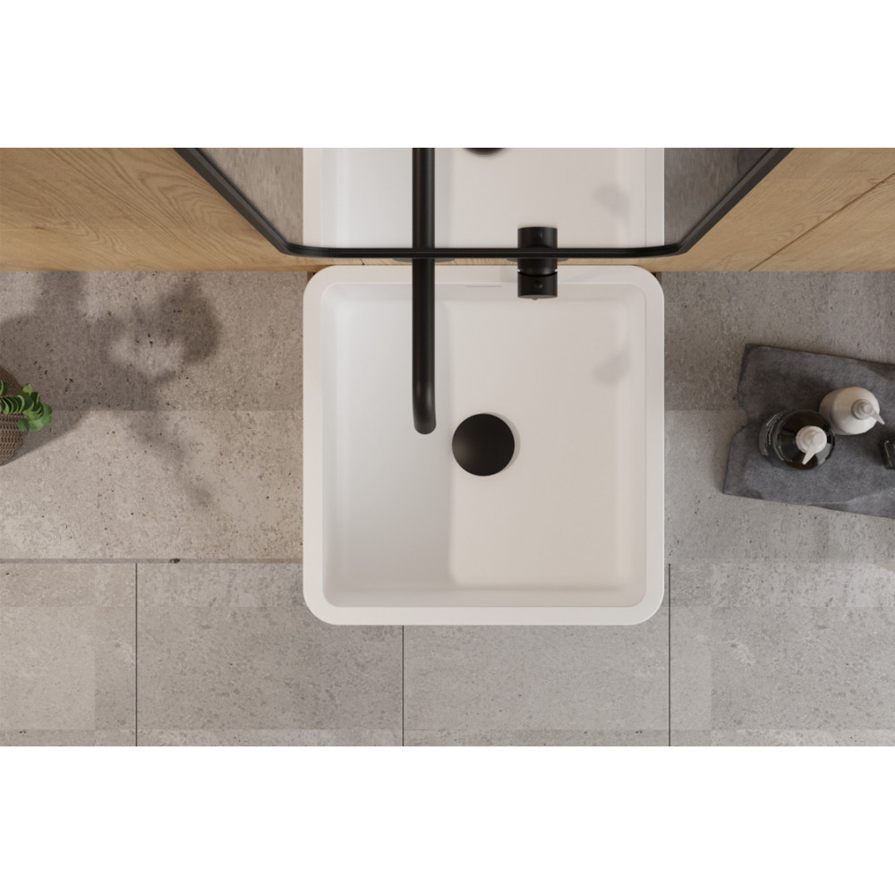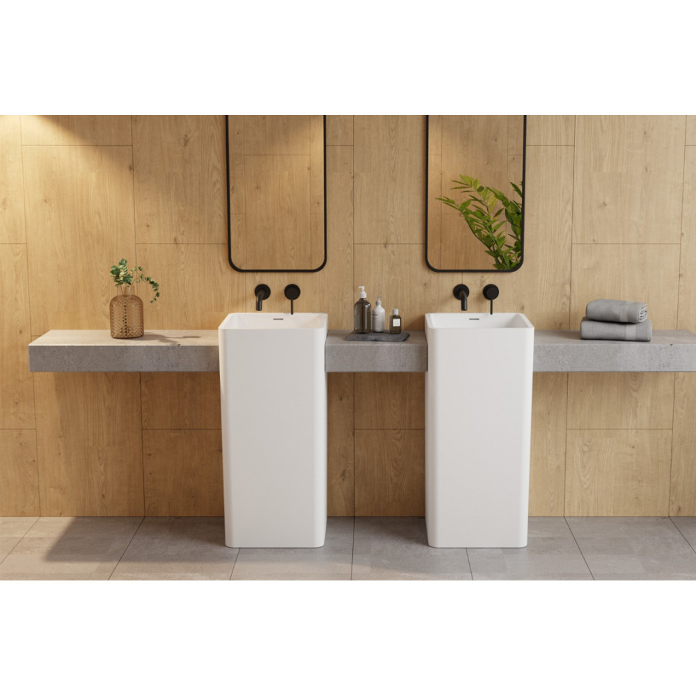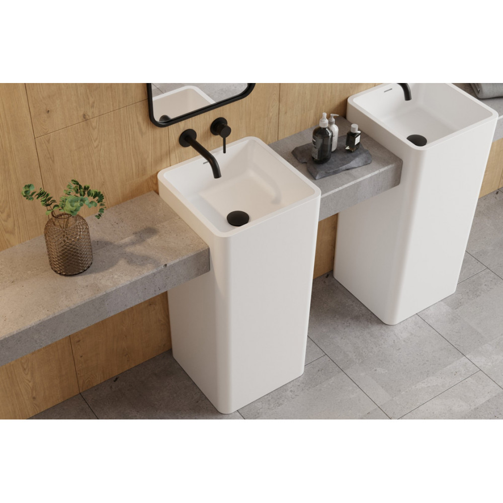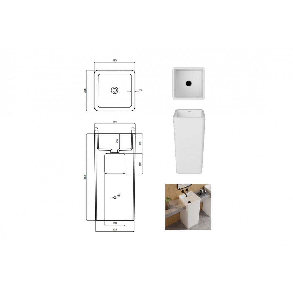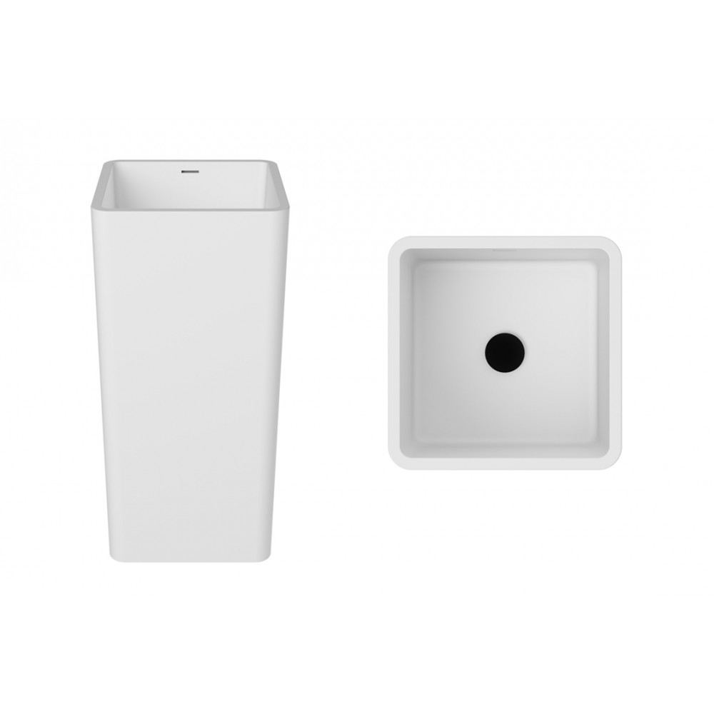 Опис Умивальник вільностоячий AYGO 40x40x85 білий матовий, з cифоном клік-клак (чорний матовий)
