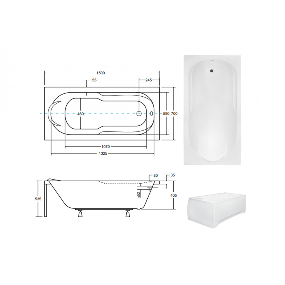 Опис Ванна акрилова BONA 150х70 соло / без ніг