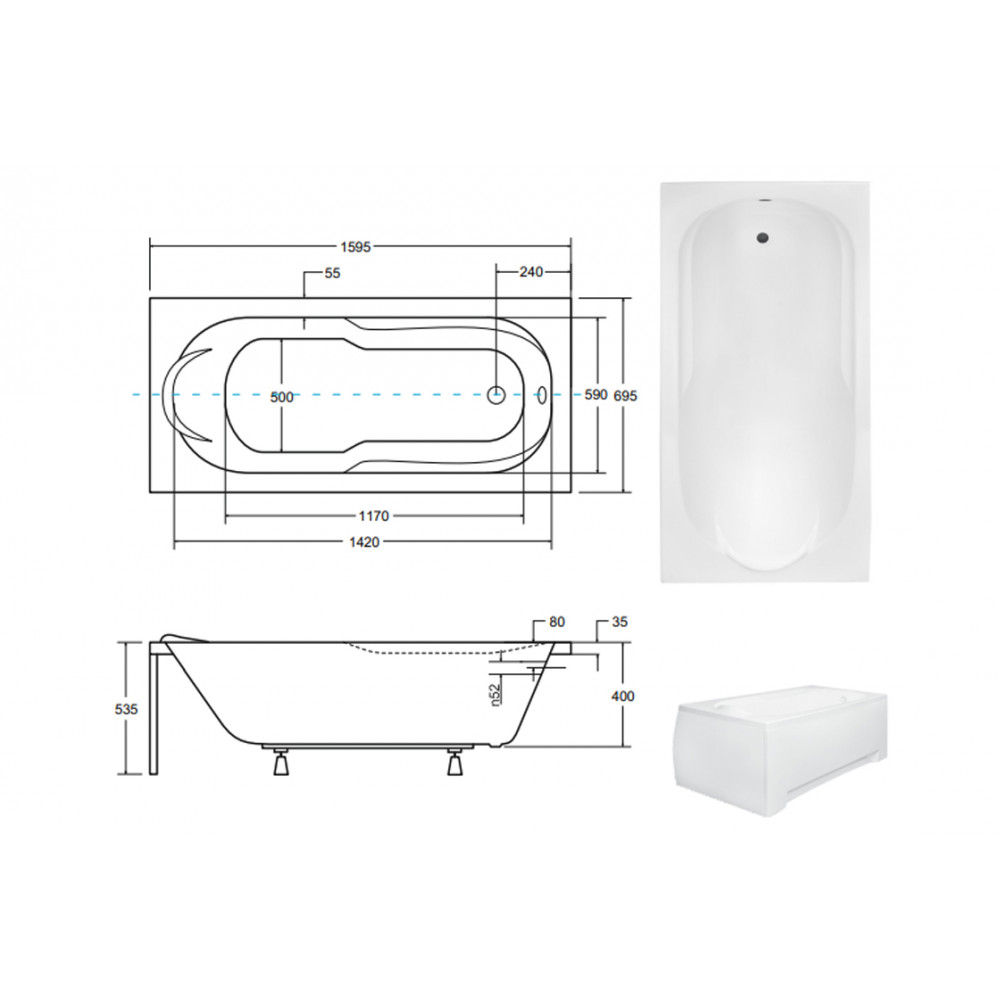 Опис Ванна акрилова BONA 160х70 соло / без ніг