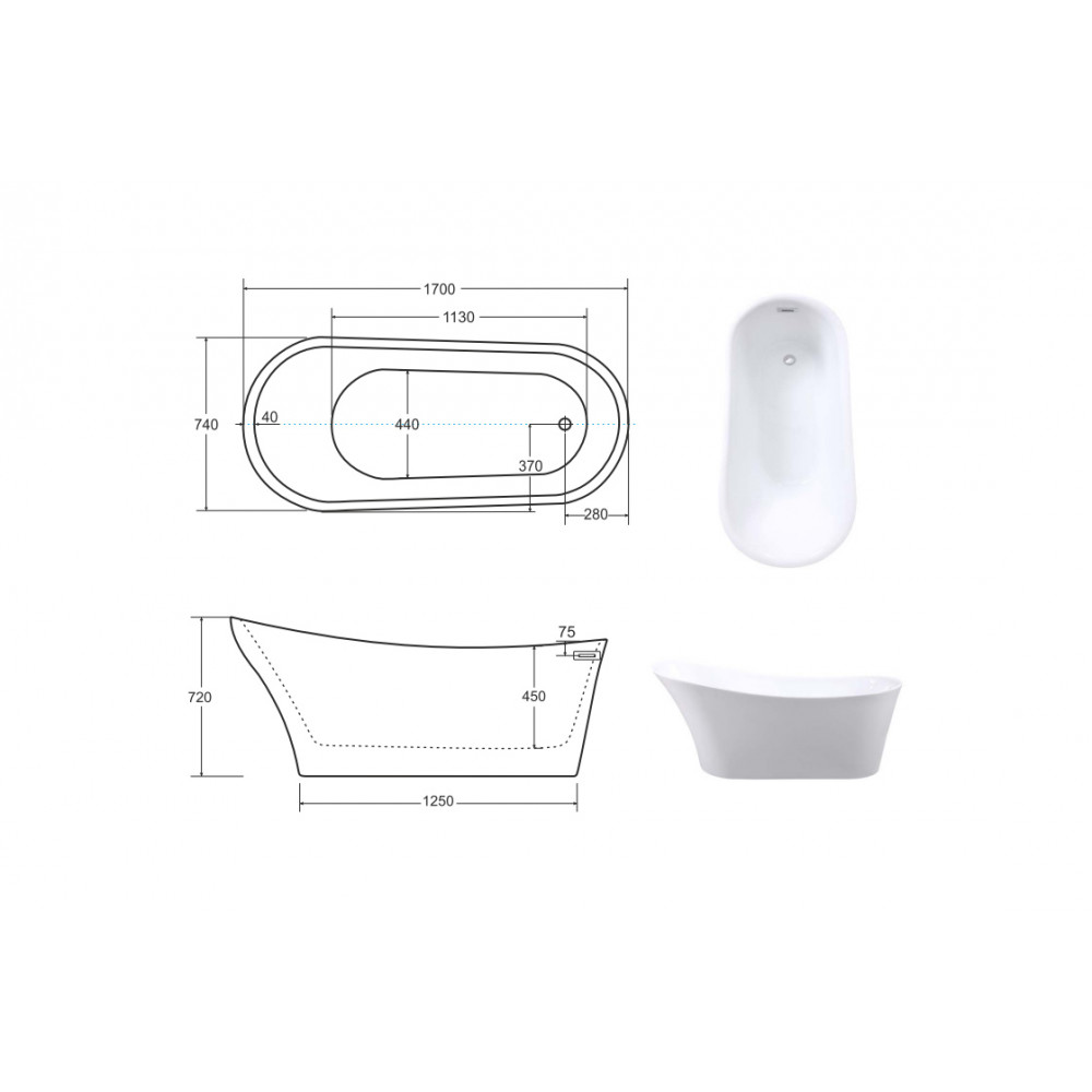 Опис Ванна акрилова CALIMA вільностояча 170х74 з сифоном клік-клак