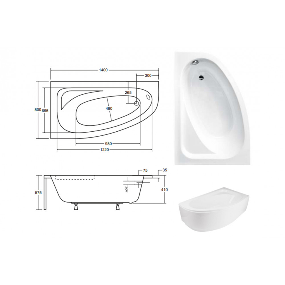 Опис Ванна акрилова CORNEA 140х80 Ліва (соло) без ніг