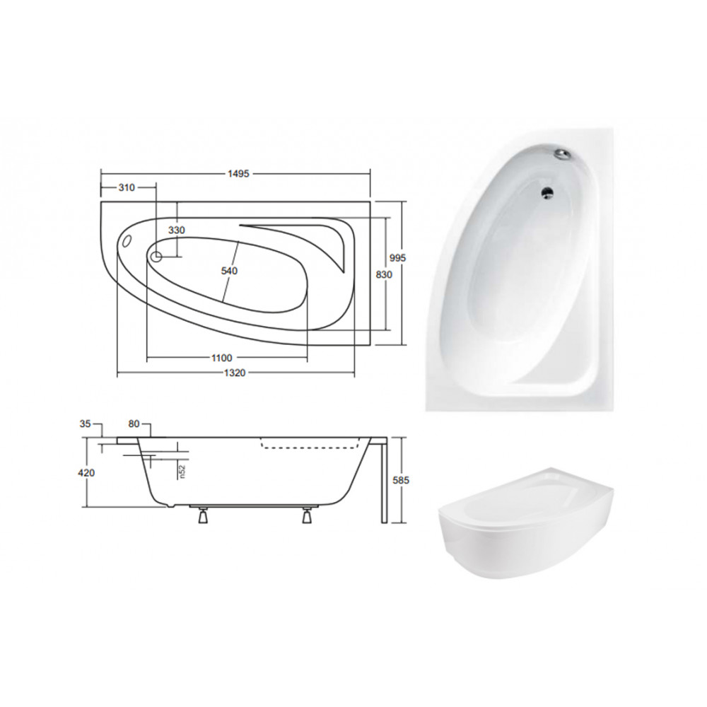 Опис Ванна акрилова CORNEA 150х100 Права (соло) без ніг