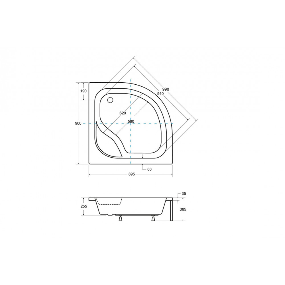 Опис Піддон півкруглий DIPER I 90x90x24/38,5 з сидінням + ноги