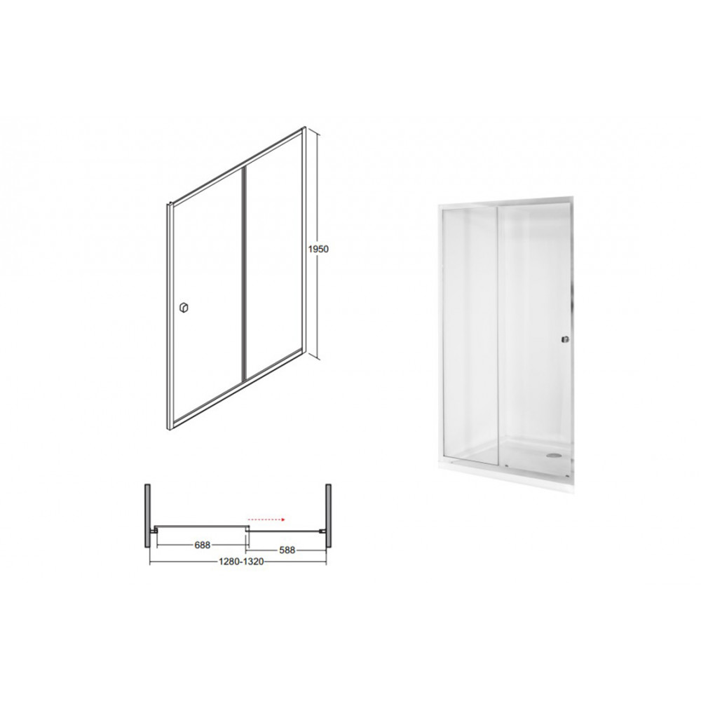 Опис Душові двері Duo slide 130x195 профіль хромований блискучий, скло прозоре