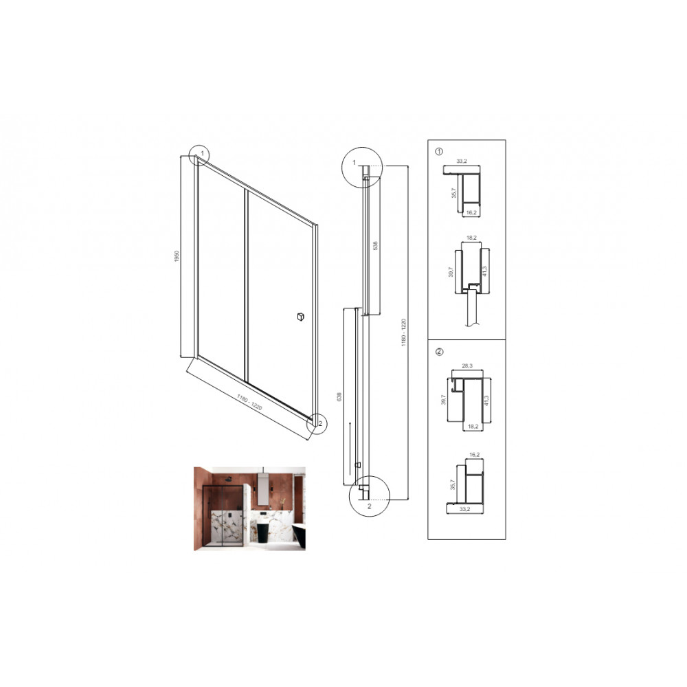 Опис Душові двері Duo Slide black 120x195 профіль чорний матовий, скло прозоре