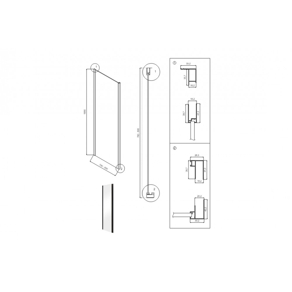 Панель бокова Duo Slide black 80x195 профіль чорний матовий, скло прозоре (#12966-01)
