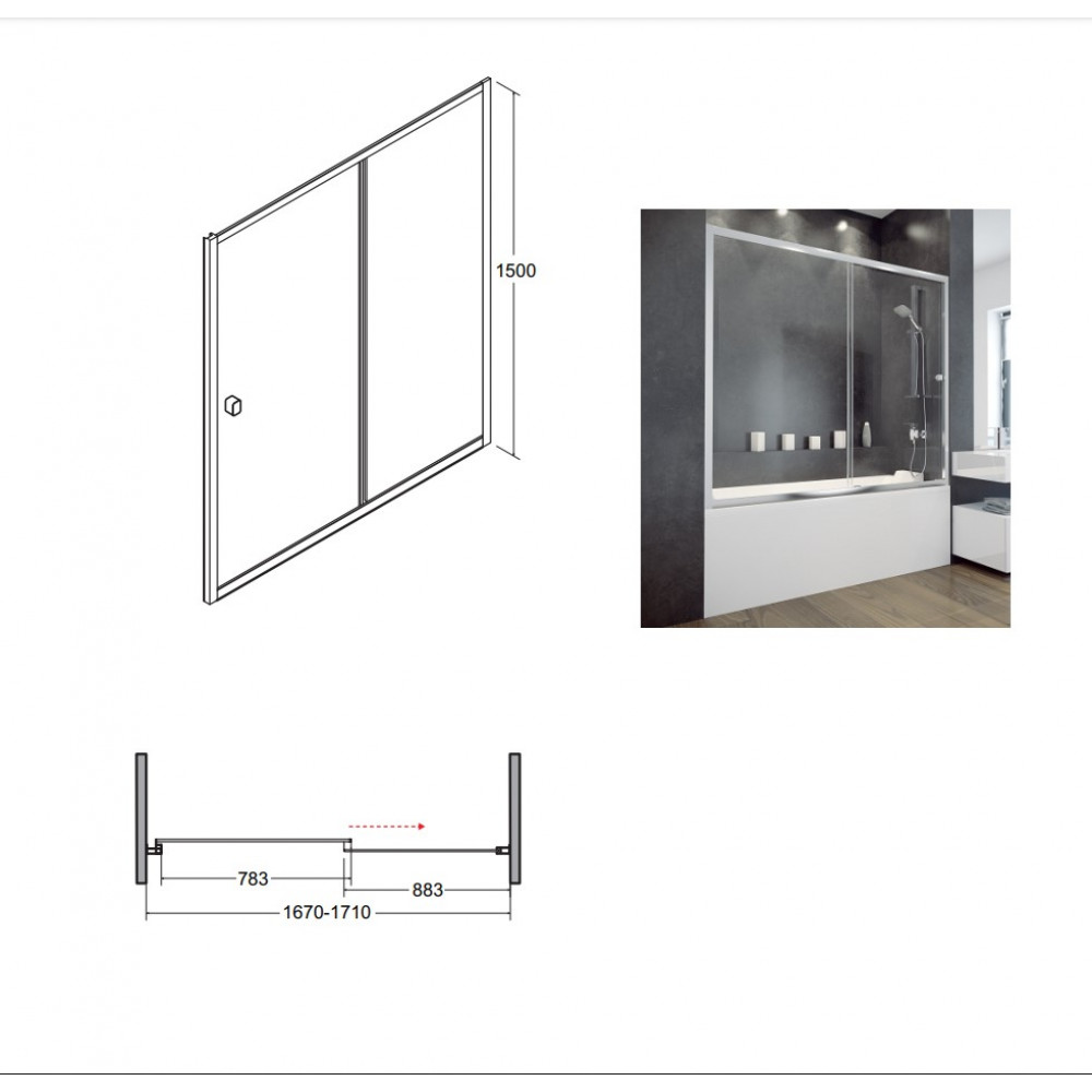 Опис Шторка для ванни BESCO Duo Slide II 170x150