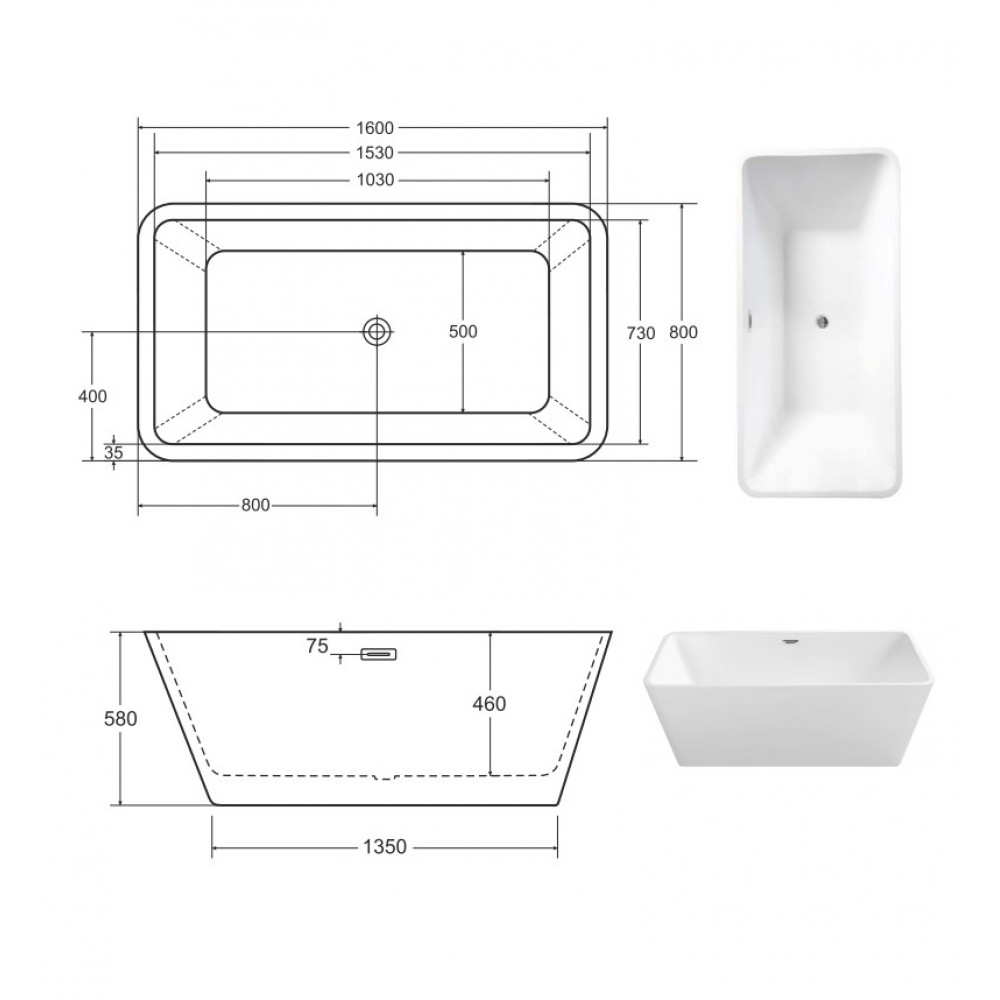 Опис Ванна акрилова EVITA 160х80 з сифоном клік-клак