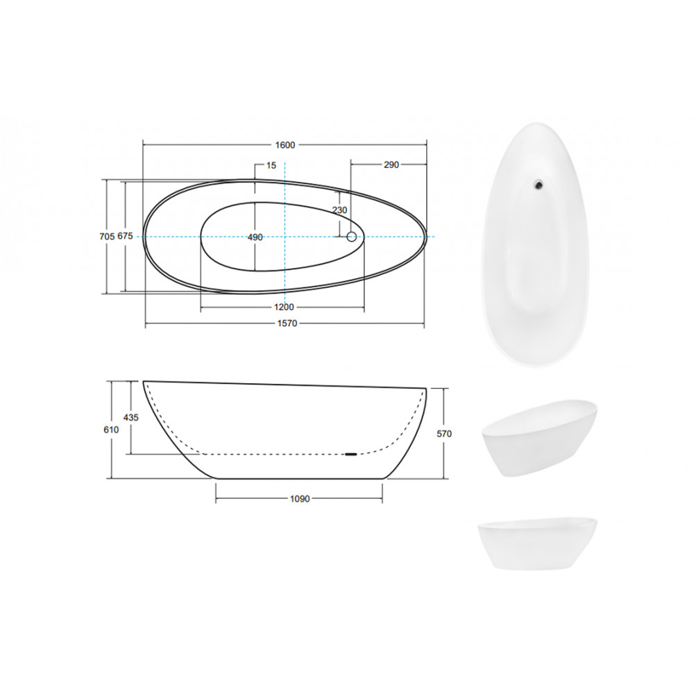 Опис Ванна GOYA 160х70 чорна зовні чорна всередині з сифоном клік-клак