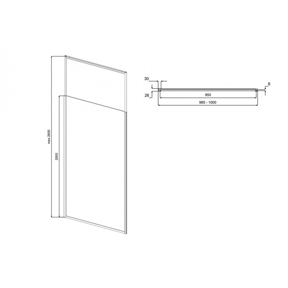 Опис Кабіна walk in ICON 100x200-280 скло прозоре, профіль хром