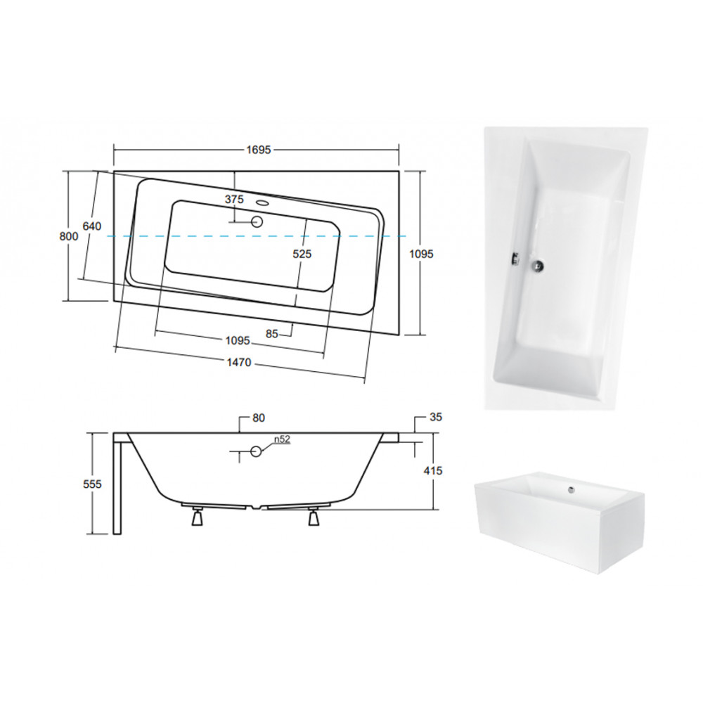 Опис Ванна акрилова INFINITI 170х110 Права (соло) без ніг