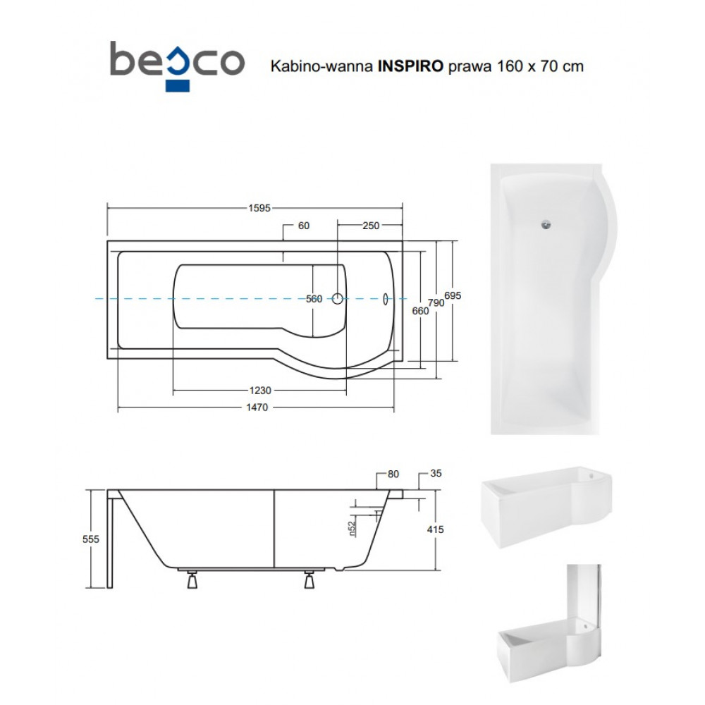 Опис Ванна акрилова INSPIRO 160х70 Права (соло) без ніг