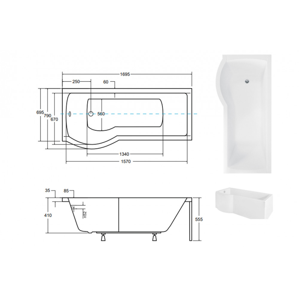 Опис Ванна акрилова INSPIRO 170х70 Ліва (соло) без ніг