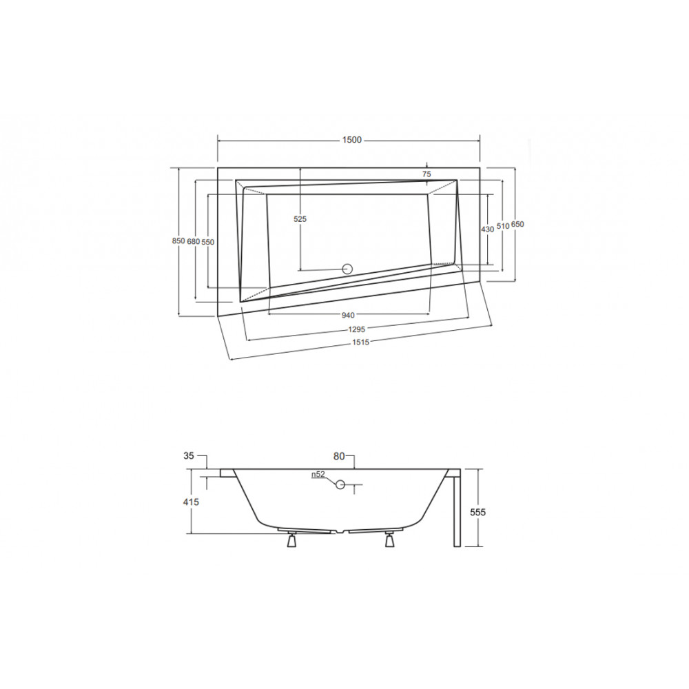Опис Ванна акрилова INTIMA 150x85 Ліва (соло) без ніг