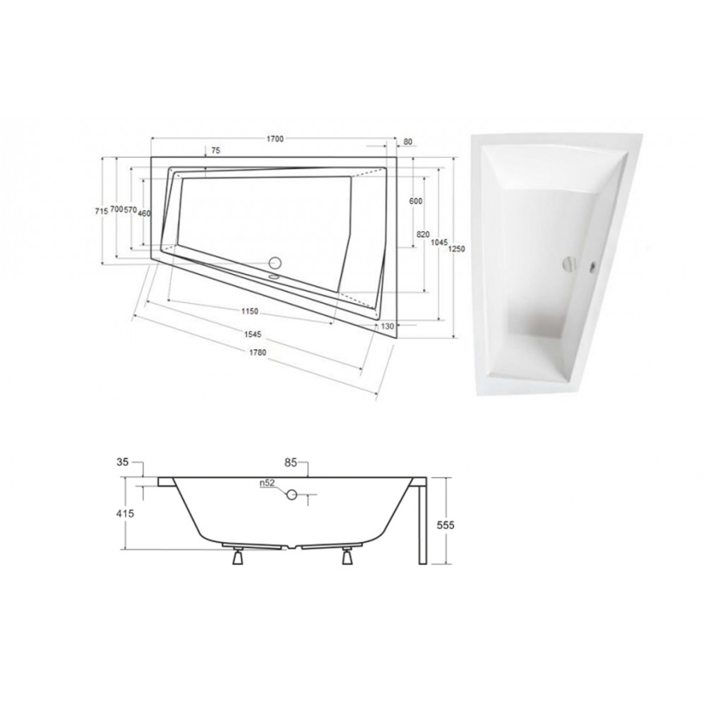 Опис Ванна акрилова INTIMA DUO 170x125 Права (соло) без ніг