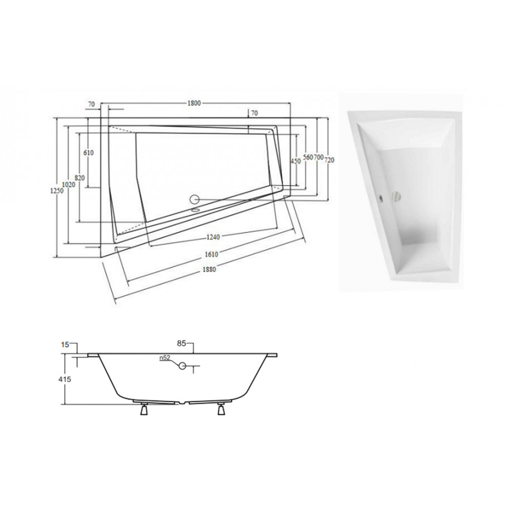 Опис Ванна акрилова INTIMA DUO SLIM 180х125 Ліва (соло), без ніг