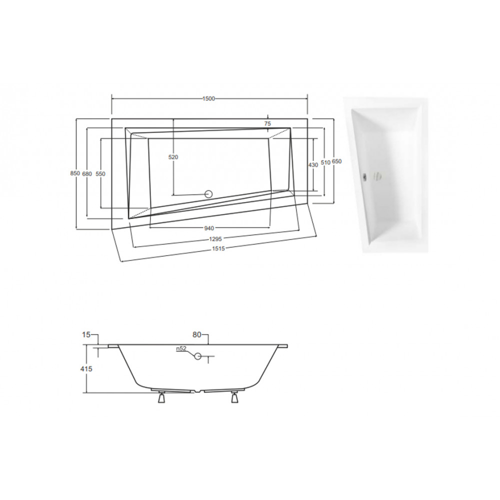 Опис Ванна акрилова INTIMA SLIM 150х85 Ліва (соло) без ніг