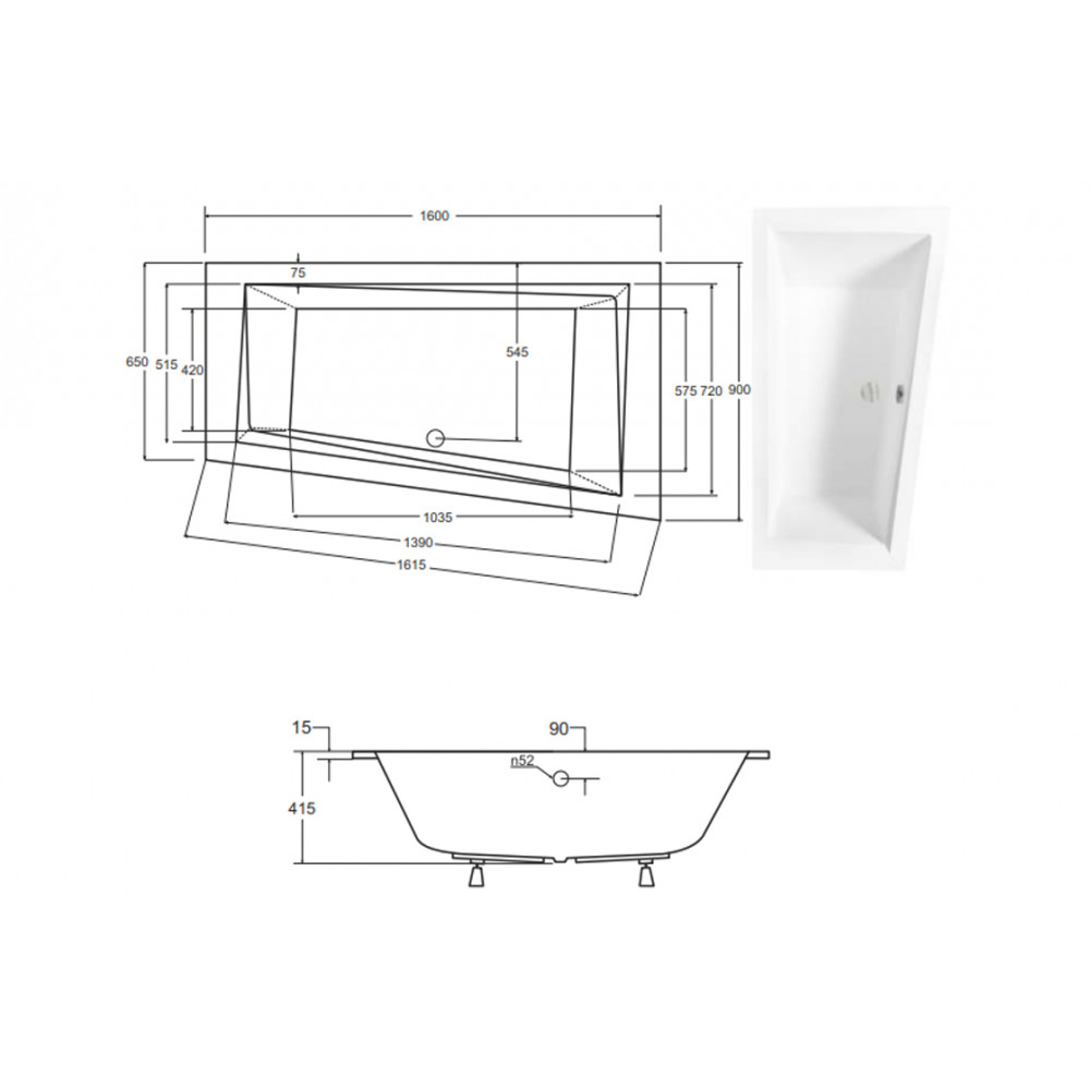 Опис Ванна акрилова INTIMA SLIM 160х90 Права (соло) без ніг