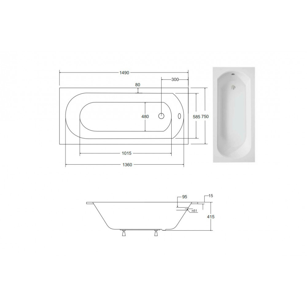 Опис Ванна акрилова INTRICA SLIM 150х75 (соло) без ніг
