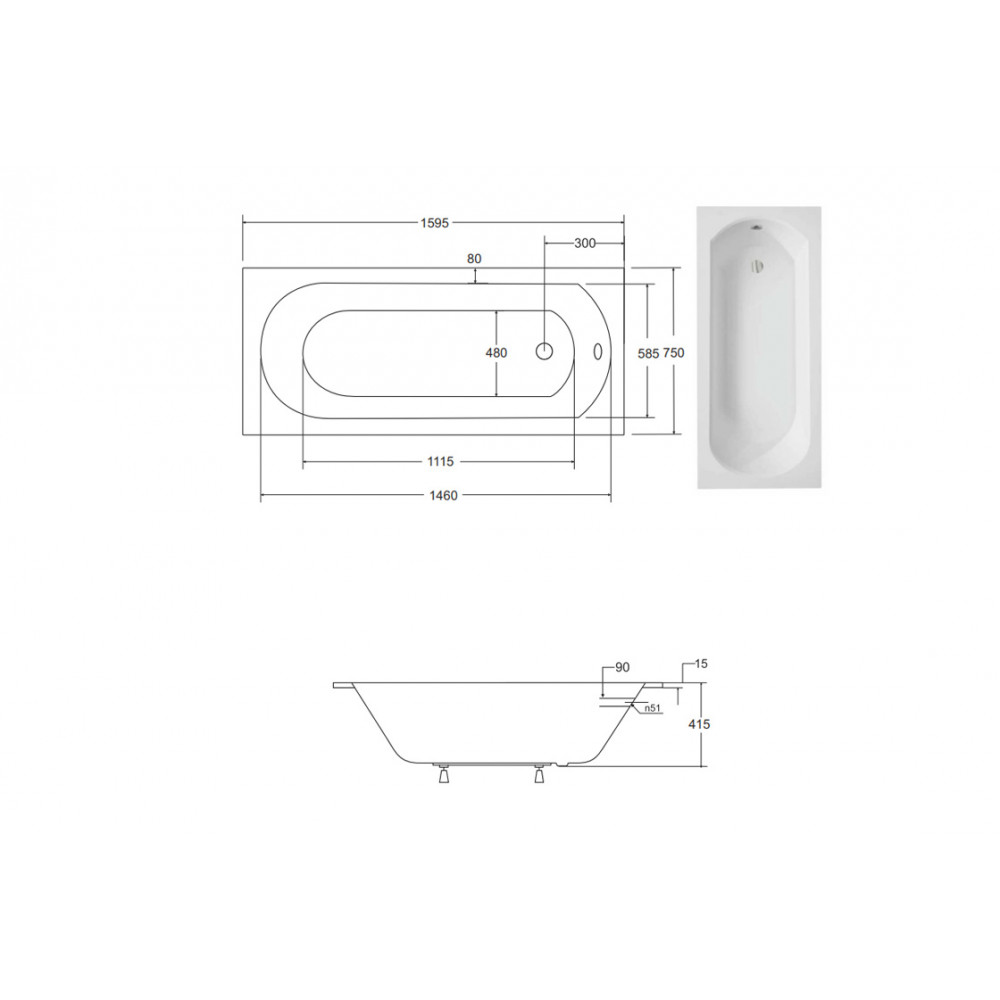 Опис Ванна акрилова INTRICA SLIM 160х75 (соло) без ніг
