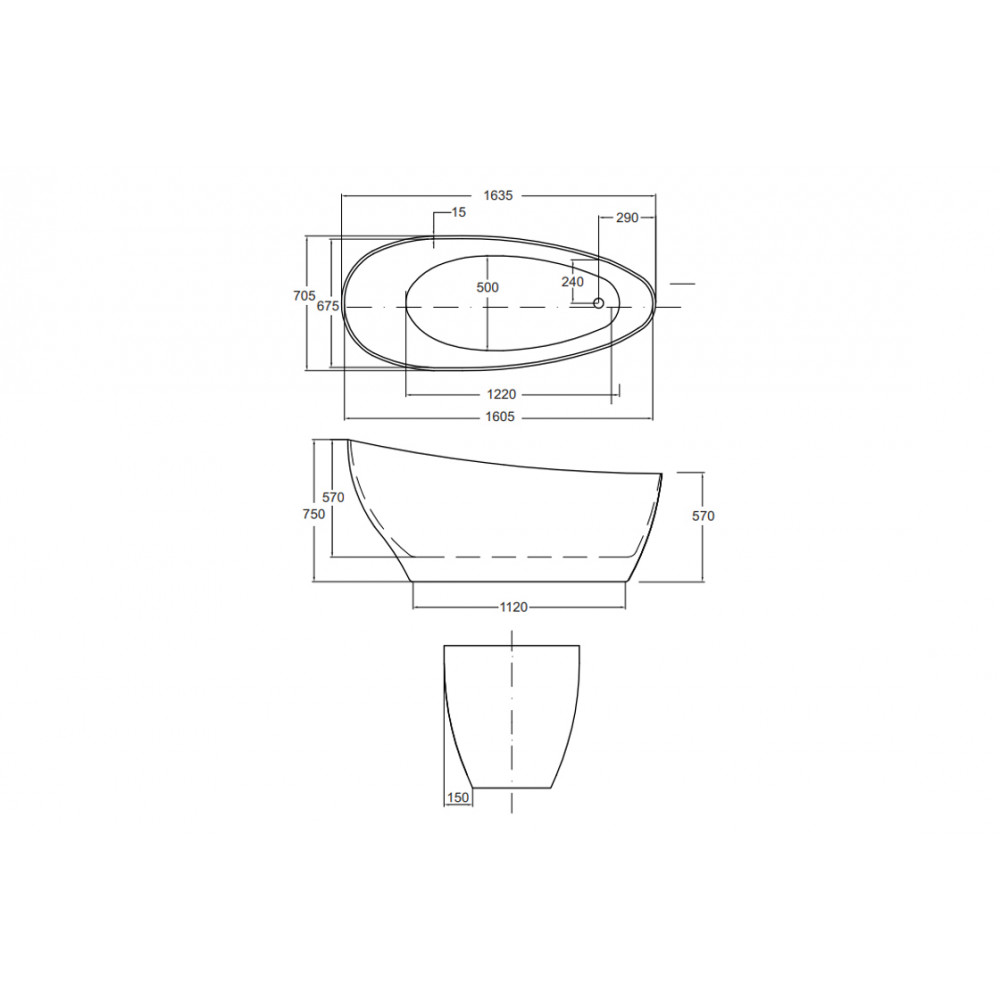 Опис Ванна KEYA 165х70 чорна зовні біла всередині з сифоном клік-клак