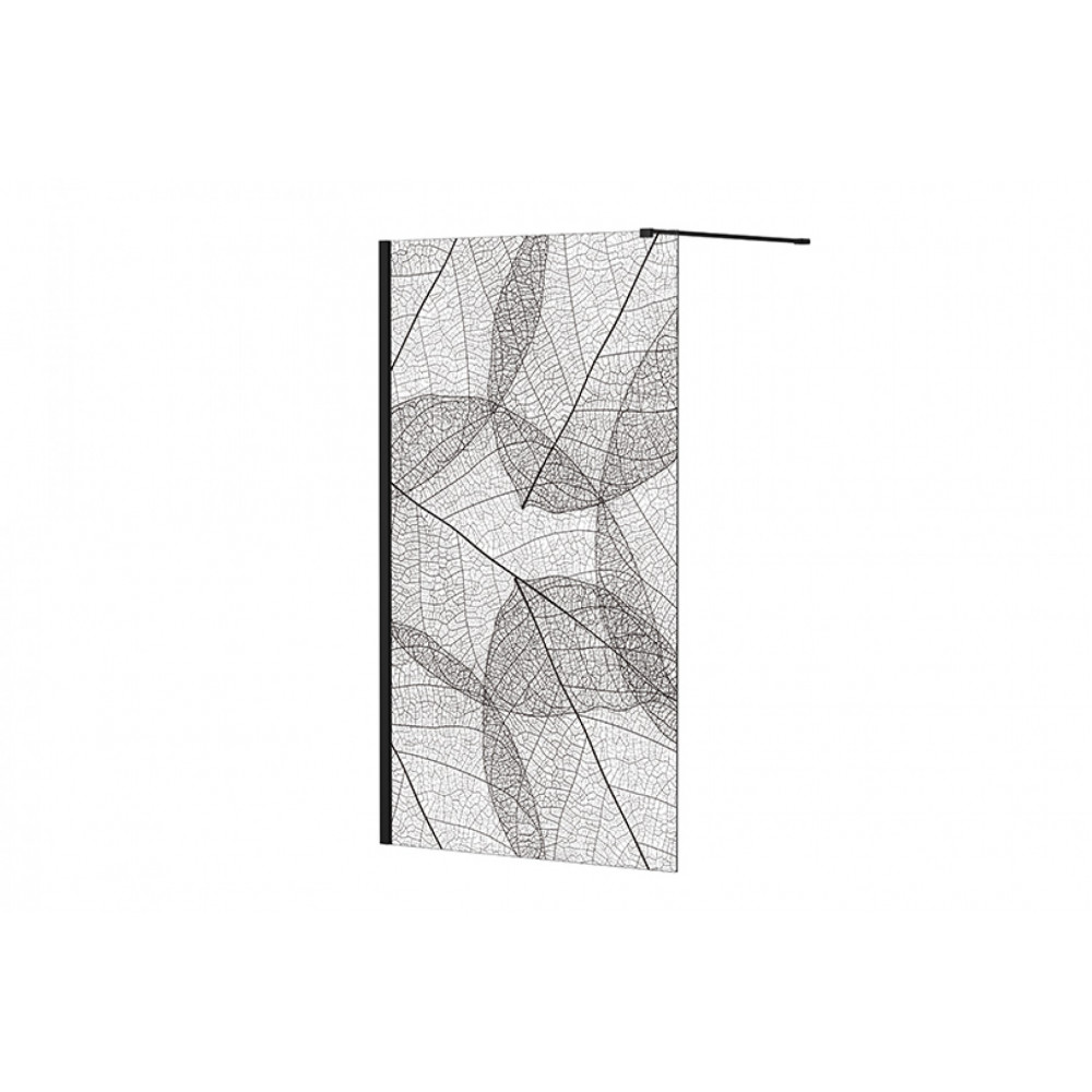 Кабіна walk in LEAFY 110x200 скло прозоре з візерунком, тримач чорний ма 120 см (#13100-01)