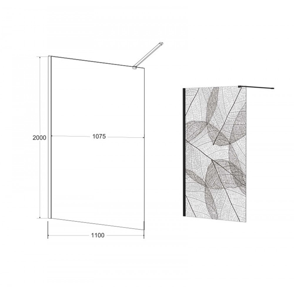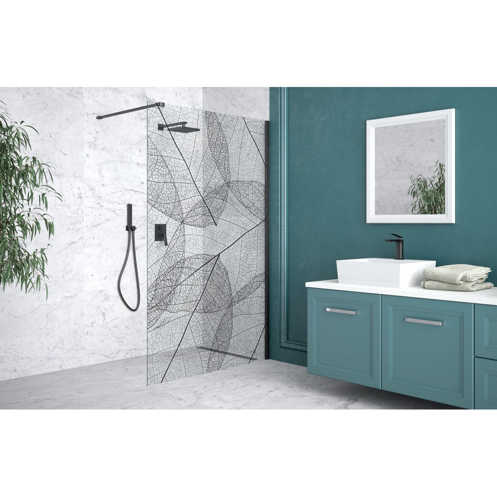 Опис Кабіна walk in LEAFY 110x200 скло прозоре з візерунком, тримач чорний ма 120 см