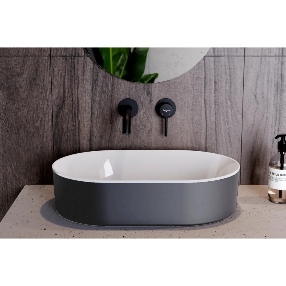 Опис Умивальник на стільницю LOVA 53х34 gun metal matt зовні, зсередини білий глянцевий