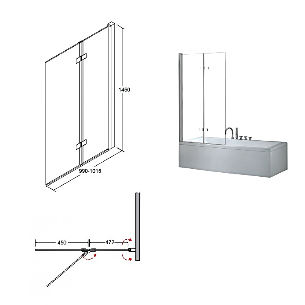 Шторка для ванни BESCO Lumix-2S 100x145 (#13112-01)