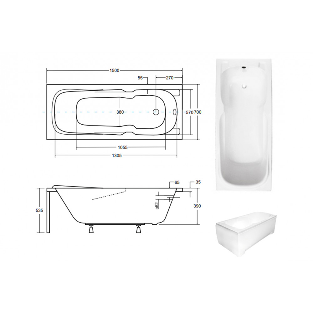 Опис Ванна акрилова MAJKA NOVA 150х70 (соло) без ніг (mira)